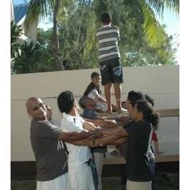 Dans l’après-midi, nous avons bénéficié de la visite des membres du groupe Ny Ako qui ont ajouté une touche de couleurs au camp à travers les jeux, chants et danses. Ce qui était intéressant, c’est le fait que les jeux n’étaient pas vains. Ils avaient tous un sens caché, quelque chose qui nous permettait d’identifier nos propres réactions dans certaines circonstances de la vie. Ces jeux exigeaient un abandon, un accès de confiance. Par exemple, comment pouvoir suivre un ami qui nous guide en ayant les yeux clos. Ou encore, se jeter en arrière, debout sur deux tables superposées à deux mètres de haut, les yeux levés vers le ciel, en ayant foi qu’une chaîne de bras nous récupérera.